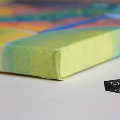 Impresión directa a todo color sobre canvas. Es sólo para interior, con una duración de 10 años. Ancho máximo 1.45m en una pieza. Es como imprimir una pintura en un cuadro.